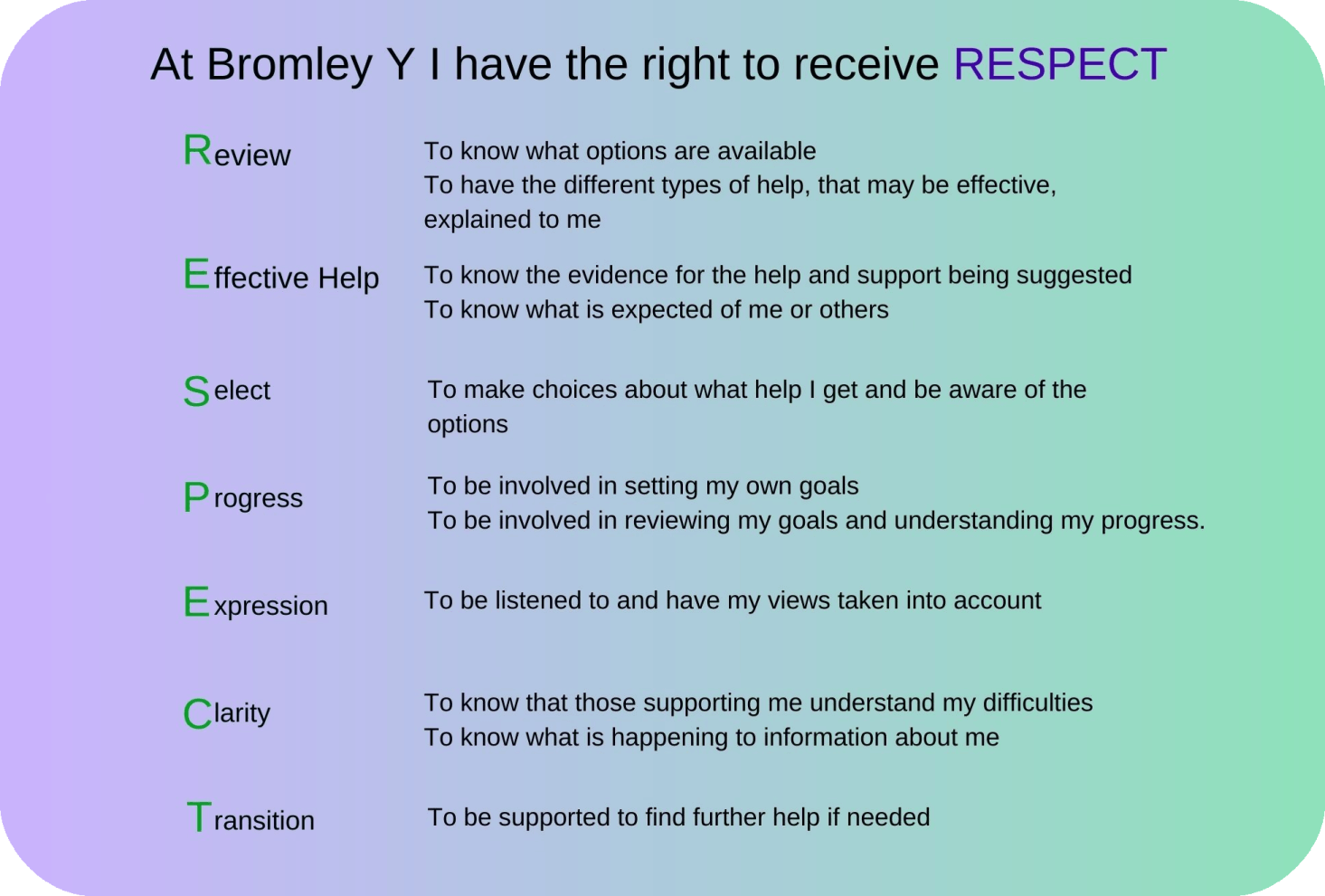 “Bromley Y is committed to promoting the wellbeing and mental health of children, young people and families by enabling change, fostering resilience and helping them build healthy relationships.